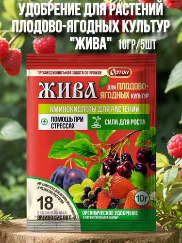 Удобрение ЖИВА аминокислоты для растений плодово-ягодных культур 10 гр - 5 шт.