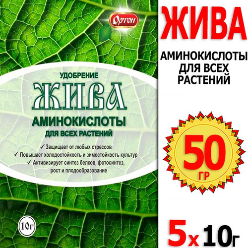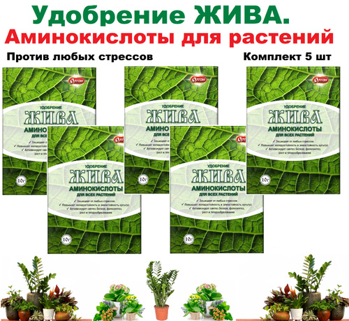 Удобрение Жива 10гр х 5шт (на 50л воды) / Аминокислоты для всех растений / Защита от стресса, стимуляция роста и корнеобразования/
