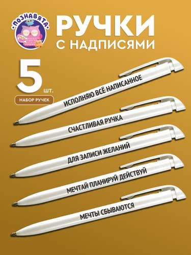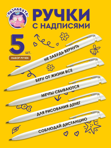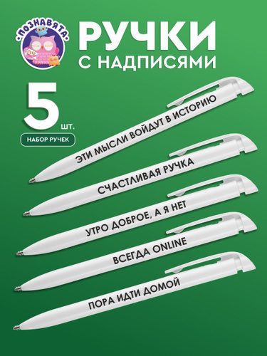 Ручки с надписями "Познавята", автоматические, набор 5 штук, прикольные, смешные, сувенир