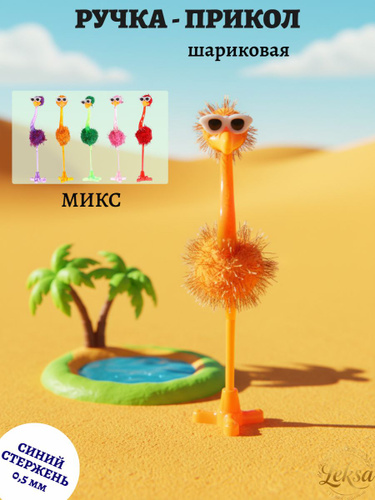 Ручка-прикол шариковая страус в очках , микс