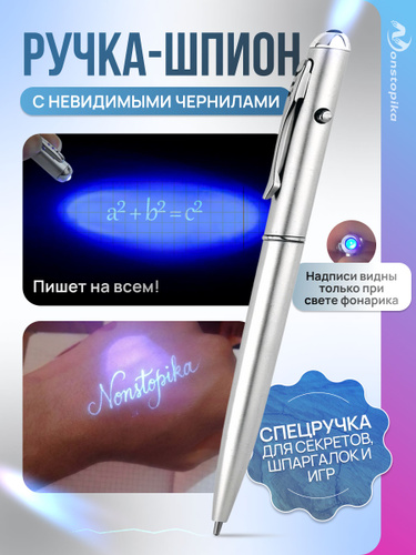 Ручка-прикол с невидимыми чернилами, надпись видно при подсвечивании фонариком
