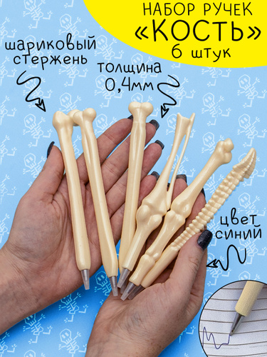 Набор Ручек Кости 6 шт Эврика, ручки шариковые синие Кость, для детей, в школу, прикол, на подарок доктору, врачу, медику
