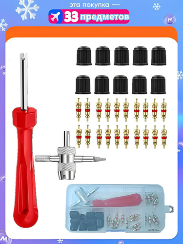Колпачки металл. с ключом 5 шт., золотники 5 шт., экстрактор золотника 1 шт.