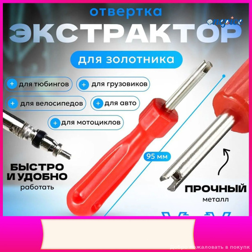 Отвертка для установки и снятии ниппеля, ключ для золотника, экстрактор двухсторонний