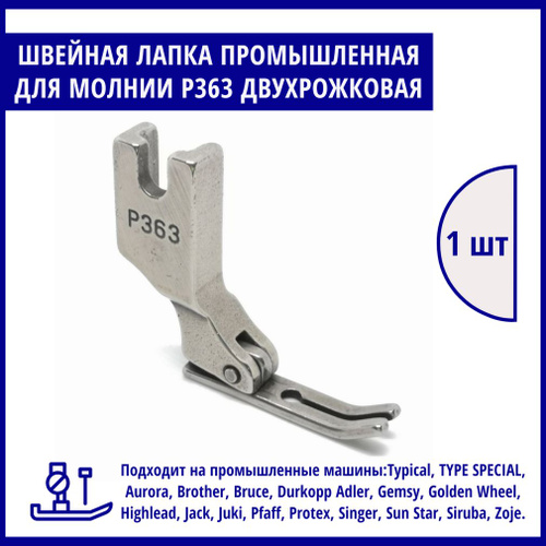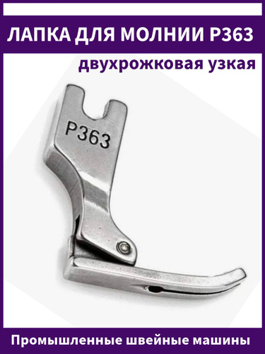 Промышленная швейная лапка P363 для вшивания молнии двухрожковая узкая, ширина подошвы 5мм