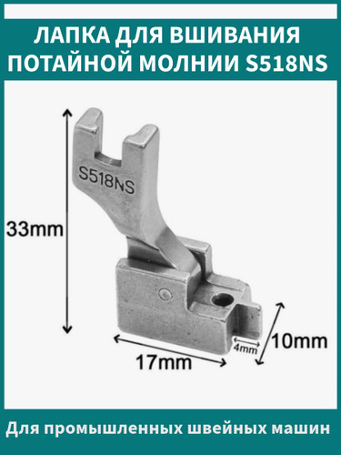 Лапка для потайной молнии S518NS для промышленных швейных машин