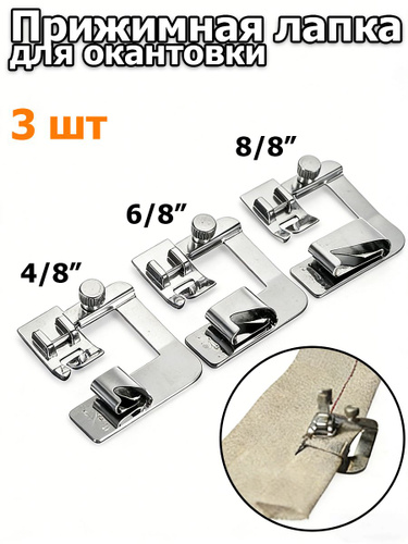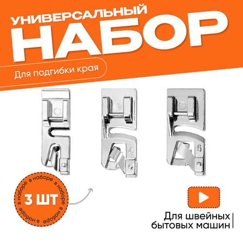 Набор лапок для швейных машин. Лапка подрубочная, лапка для подгибки края, улитка, 3 шт
