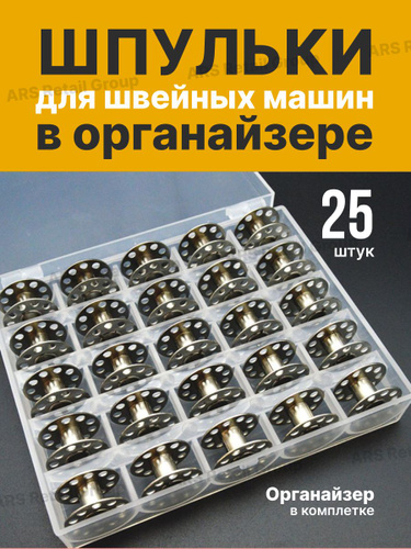 Шпульки для бытовых машин стальные 25 шт в органайзере