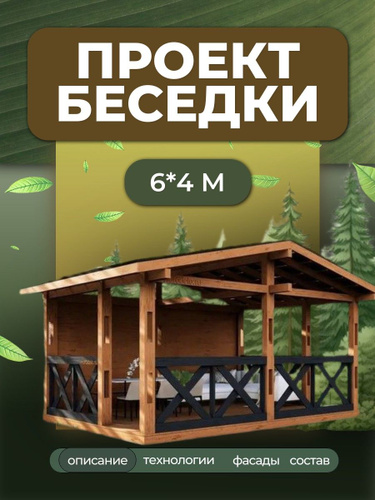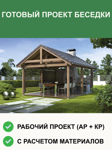 Готовый проект беседки Б2 из дерева 5.64х4.45м