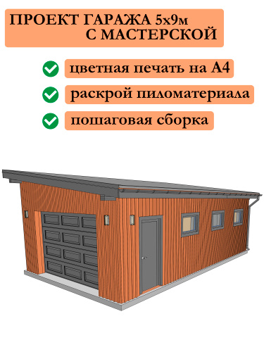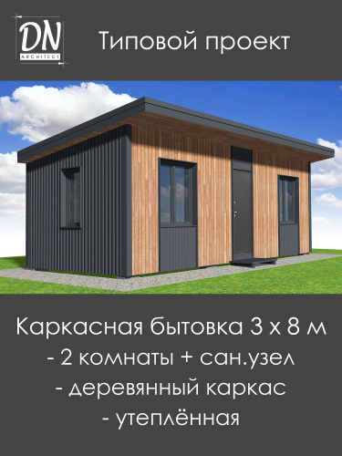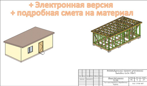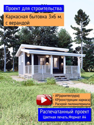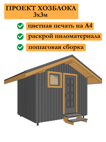 проект каркасного хозблока 3х9м с навесом 1 этаж (КР/КД).