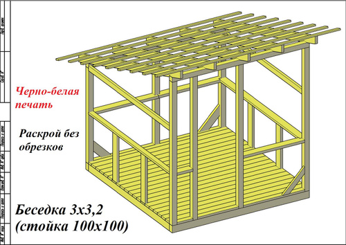 Раскрой без обрезков. Проект беседки 3х3,2 (стойка 100х100)