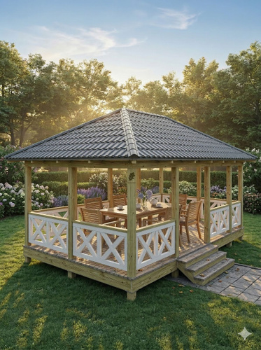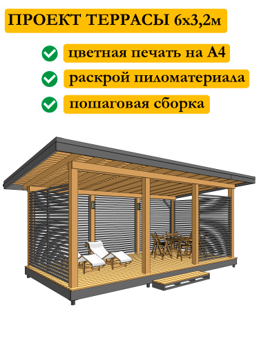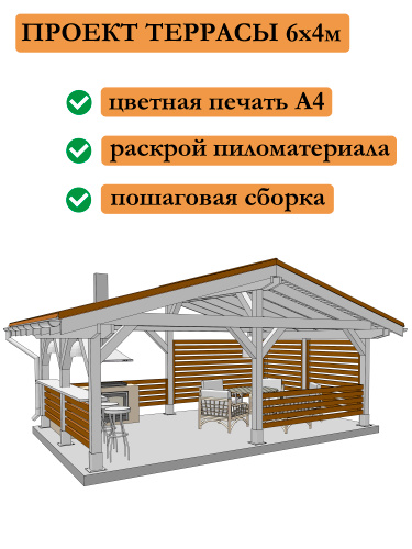 Проект каркасной беседки с террасой 6х6 (БХ-66)