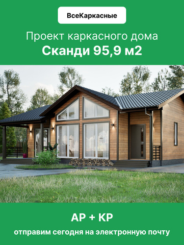 Проект дома - каркасный дом одноэтажный 3 спальни Сканди 95,9 м2