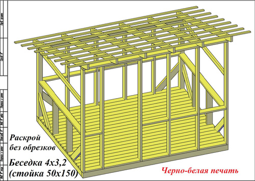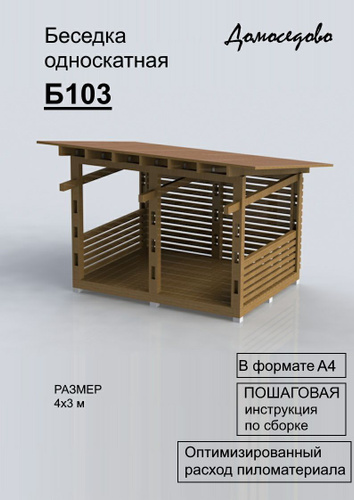 Пошаговый проект каркасной односкатной беседки Б103 (4х3) м