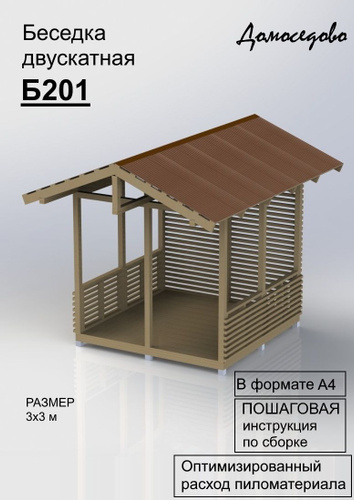 Пошаговый проект каркасной двухскатной беседки Б201 (3х3) м