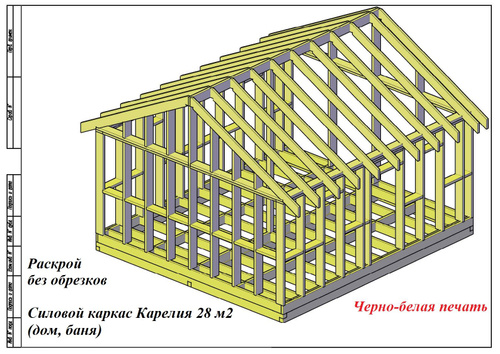 Раскрой без обрезков. Силовой каркас Карелия 28 м2 (6х5,4 метра). Проект дома, бани.
