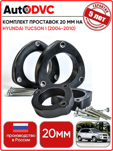 Комплект проставок 4шт., 20мм на Hyundai Tucson I (2004-2010) для увеличения клиренса AutoDVC из полиуретана, хендай