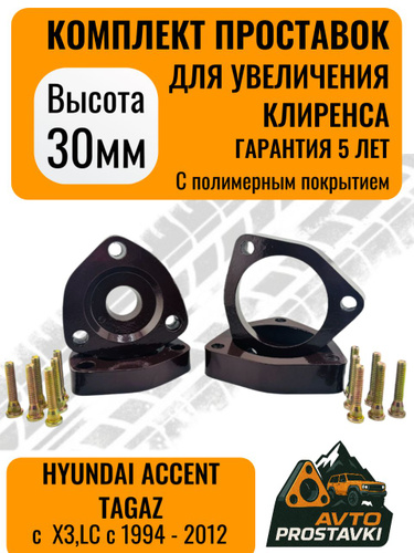Комплект проставок увеличения клиренса Hyundai ACCENT ТАГАЗ с 1994 - 2012 30мм алюминий