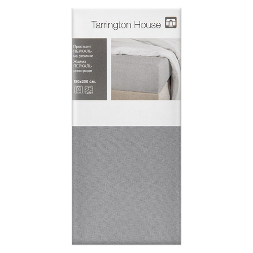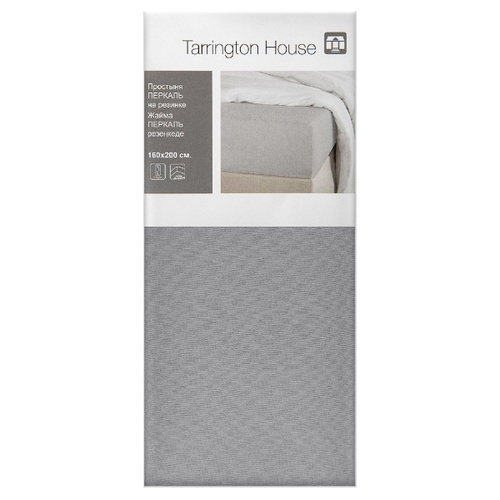 Tarrington House Простыня Светло-серая перкаль на резинке, 160 x 200см