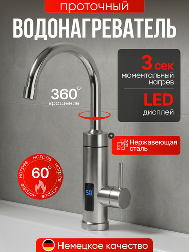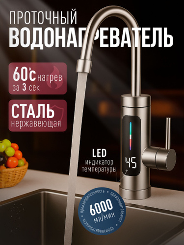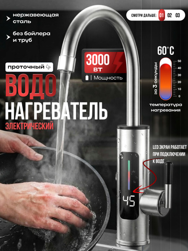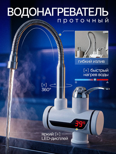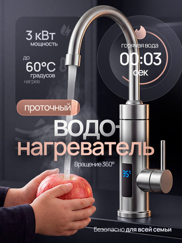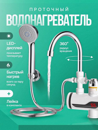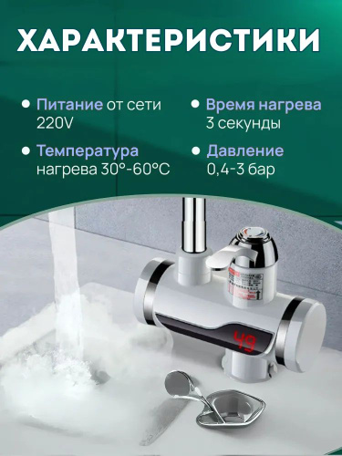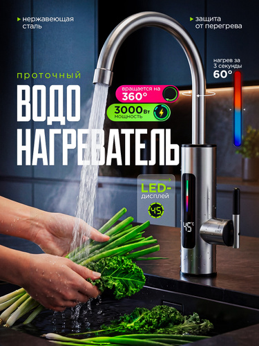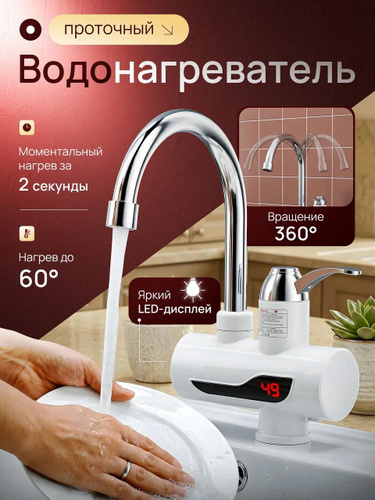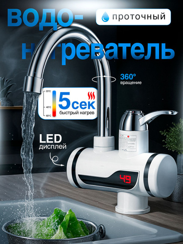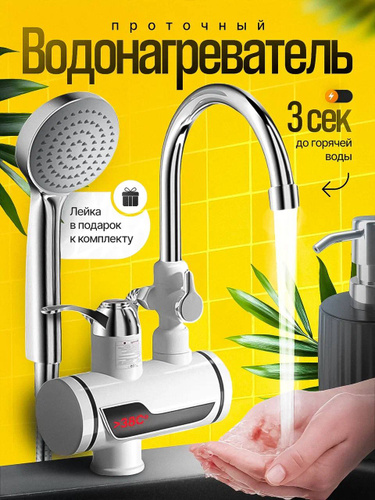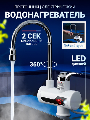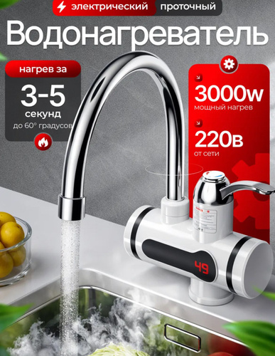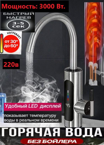 Водонагреватель проточный, электрический, кран с подогревом проточной воды для кухни
