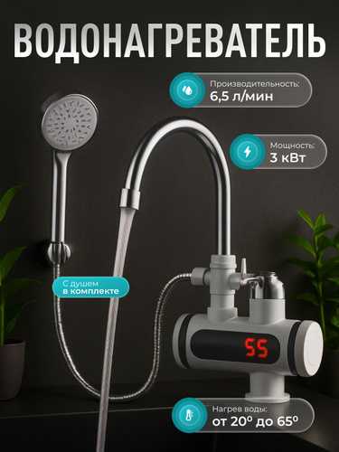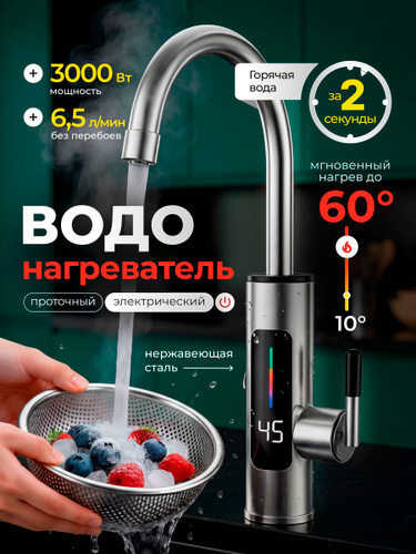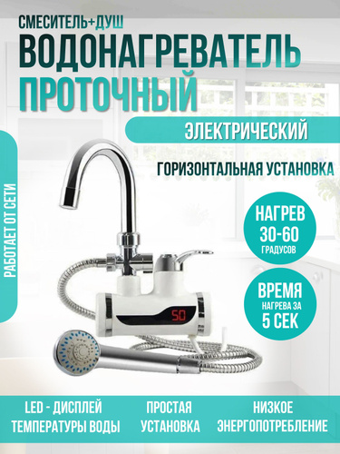 водонагреватель проточный электрический с дисплеем на кухню для дома и дачи на любой кран