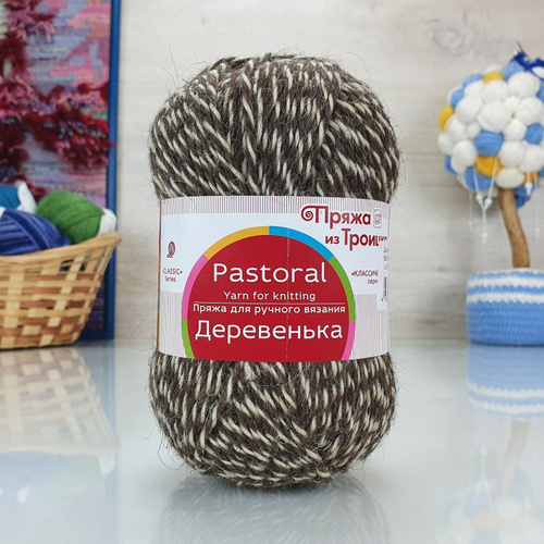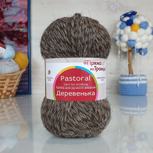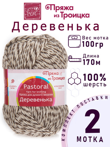 Пряжа Деревенька (ТКФ) - 1560 (мулине (сер/корич/сер)) - 1 моток, 100% шерсть, (100г, 170м) нитки для ручного вязания