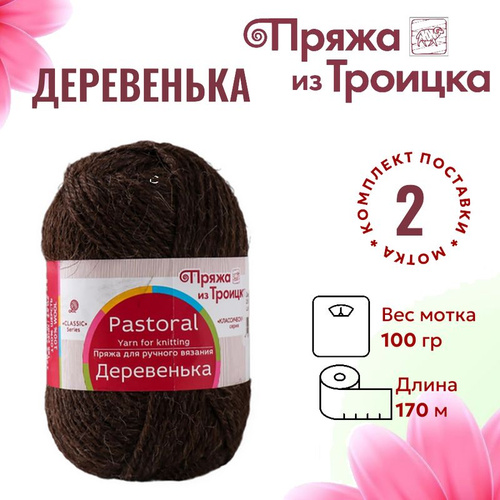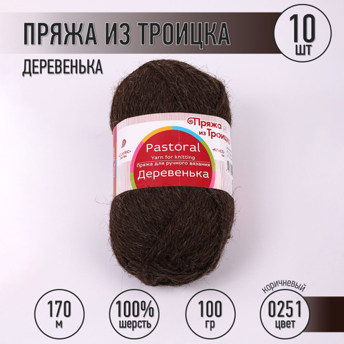 Пряжа для вязания Деревенька Троицкая 251 коричневый /2 штуки (100% шерсть, 100гр/ 170м)