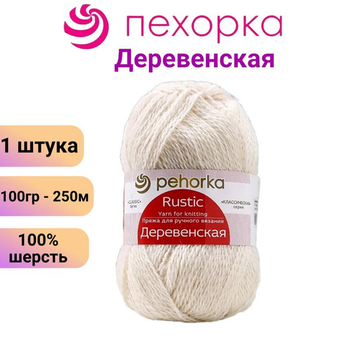 Пряжа для вязания Пехорка Деревенская 01 белый / 1 штука (100% шерсть,100гр/250м)