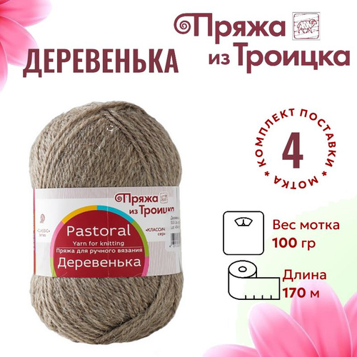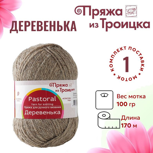 Пряжа для вязания Деревенька Троицкая 166 суровый /1 штука (100% шерсть, 100гр/ 170м)