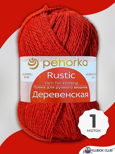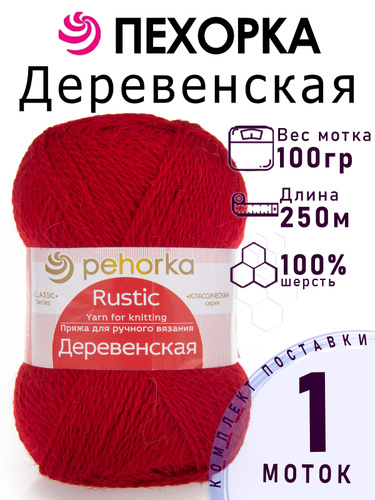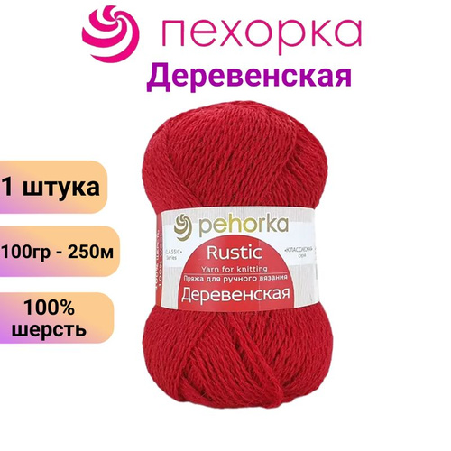 Пряжа для вязания Пехорка Деревенская 88 красный мак / 1 штука (100% шерсть,100гр/250м)