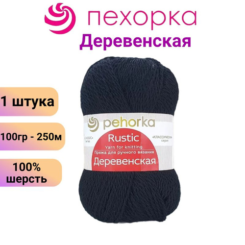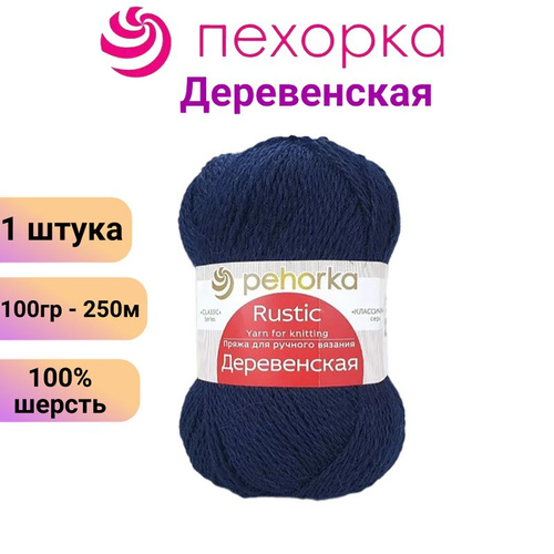 Пряжа для вязания Пехорка Деревенская 04 т.синий / 1 штука (100% шерсть,100гр/250м)