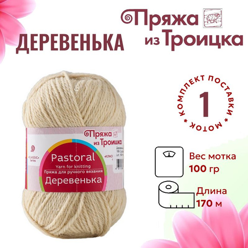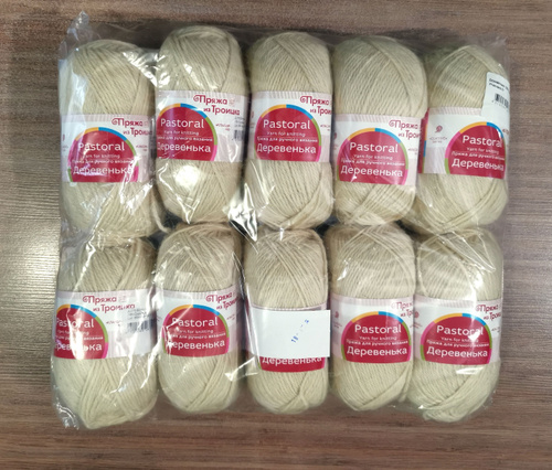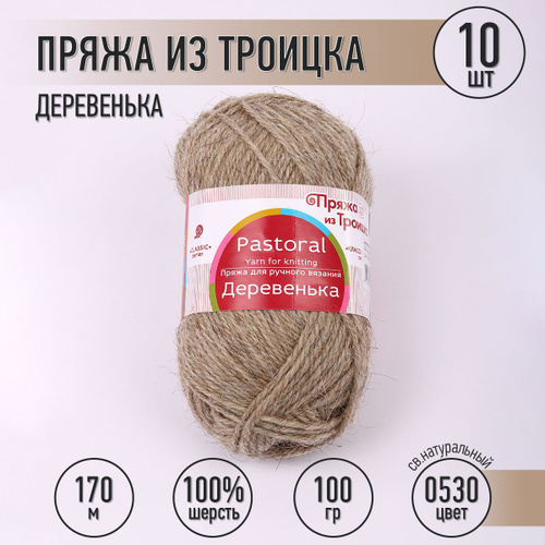 Пряжа для вязания из Троицка Деревенька 10 мотков 100 грамм 170 метров шерсть 100% цвет св.натуральный 0530