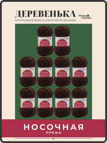 Пряжа Деревенька (ТКФ) - 251 (коричневый) - 1 моток, 100% шерсть, (100г, 170м) нитки для ручного вязания