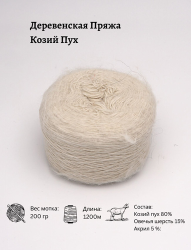 Пряжа Деревенька (ТКФ) - 530 (натуральный светлый) - 1 моток, 100% шерсть, (100г, 170м) нитки для ручного вязания