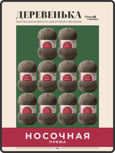 Пряжа для вязания шерсть. Натуральные нитки для вязания носков, свитеров Деревенька 10 мотков