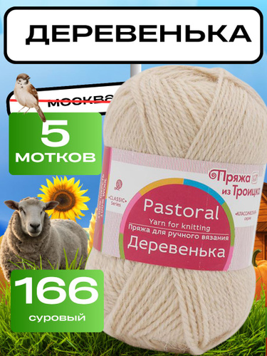 Пряжа Деревенька (ТКФ) - 166 (суровый) - 5 мотков, 100% шерсть, (100г, 170м) нитки для ручного вязания