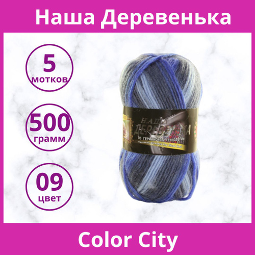 Пряжа Color City Наша Деревенька цвет 09 синий меланж (упаковка 5 мотков)