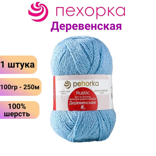 Пряжа для вязания Пехорка Деревенская 177 голубое небо / 1 штука (100% шерсть,100гр/250м)