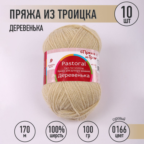 Пряжа для вязания из Троицка Деревенька 10 мотков 100 грамм 170 метров шерсть 100% цвет суровый 0166