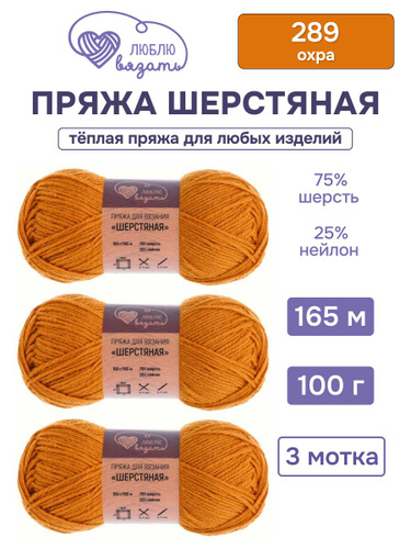 Пряжа для вязания Шерстяная, 100 г, 165 м, 3 шт, Люблю вязать, 289 охра