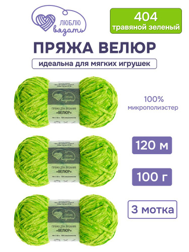 Пряжа для вязания Велюр, 100 г, 120 м, 3 шт, Люблю вязать, 404 травяной зеленый