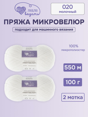 Пряжа для вязания Микровелюр, 100 г, 550 м, 2 шт, Люблю вязать, 020 молочный