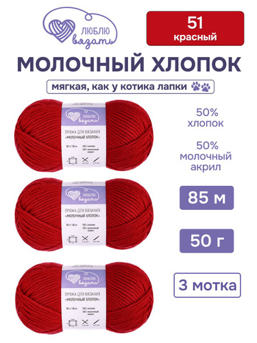 Пряжа для вязания Молочный хлопок (Milk Cotton), 50 г, 85 м, 3 шт, Люблю Вязать, 51 красный