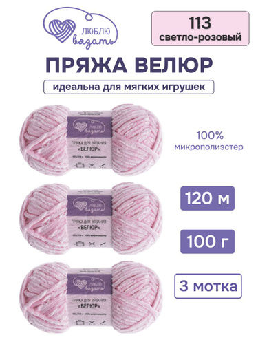 Пряжа для вязания Велюр, 100 г, 120 м, 3 шт, Люблю вязать, 113 светло-розовый