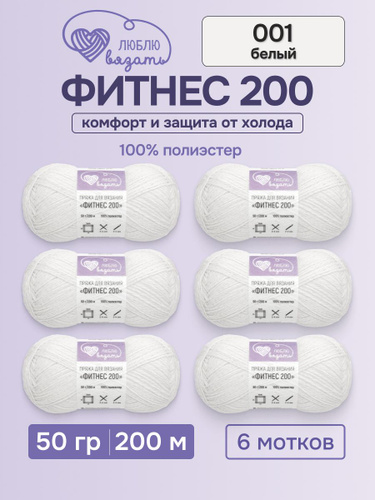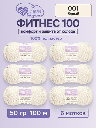Пряжа для вязания Фитнес 100, 50 г 100 м, 6 шт, Люблю вязать, 001 белый