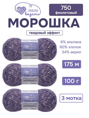 Пряжа для вязания Морошка, 100 г 175 м, 3 шт, Люблю вязать, 750 фиолетовый