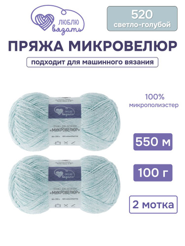 Пряжа для вязания Микровелюр, 100 г, 550 м, 2 шт, Люблю вязать, 520 светло-голубой