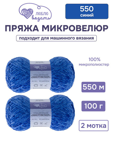 Пряжа для вязания Микровелюр, 100 г, 550 м, 2 шт, Люблю вязать, 550 синий