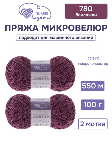 Пряжа для вязания Микровелюр, 100 г, 550 м, 2 шт, Люблю вязать, 780 баклажан