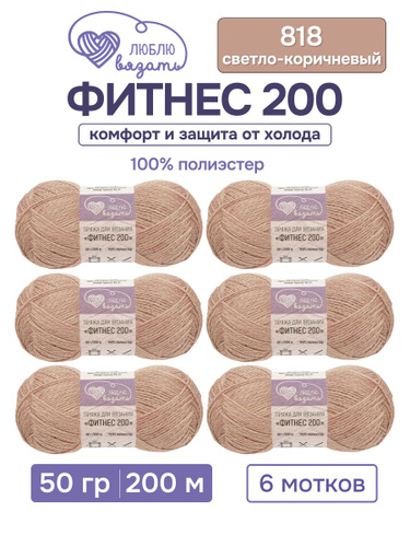 Пряжа для вязания Фитнес 200, 50 г 200 м, 6 шт, Люблю вязать, 818 светло-коричневый